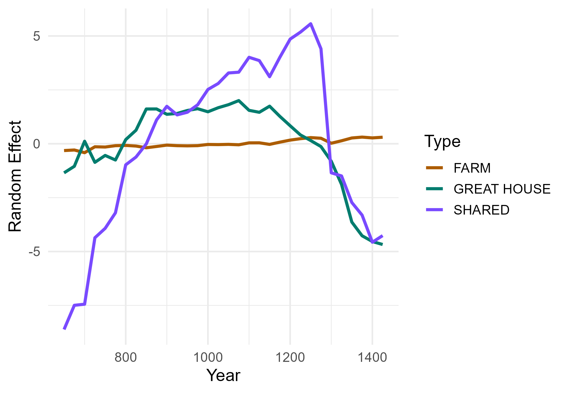 So, you can think of this model as answering the question: did some amount of historical inertia drive the distribution of great houses over and above environmental productivity?