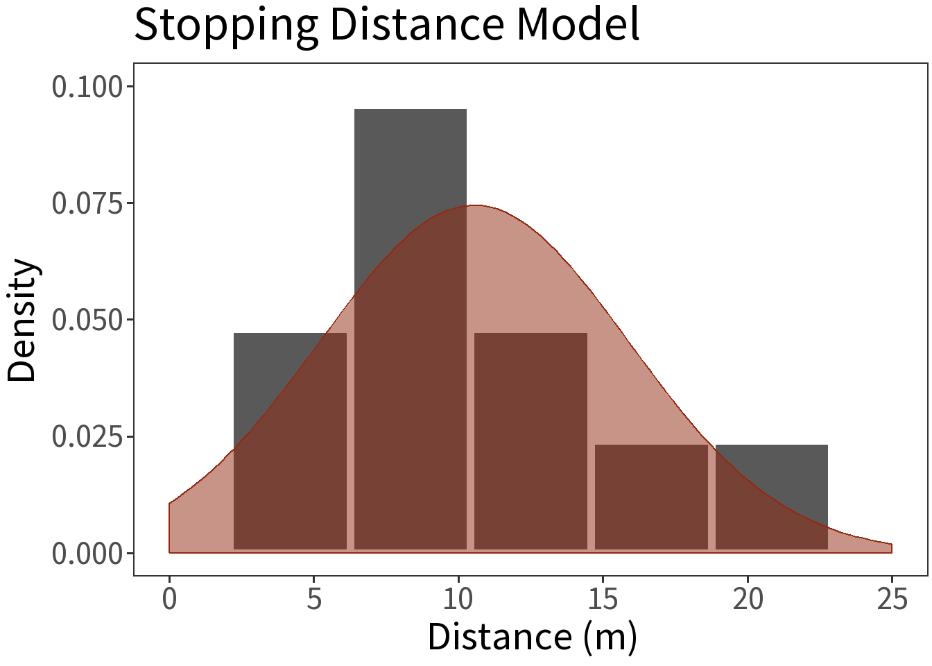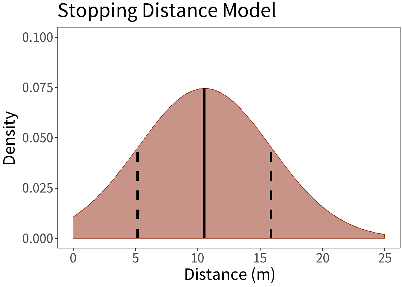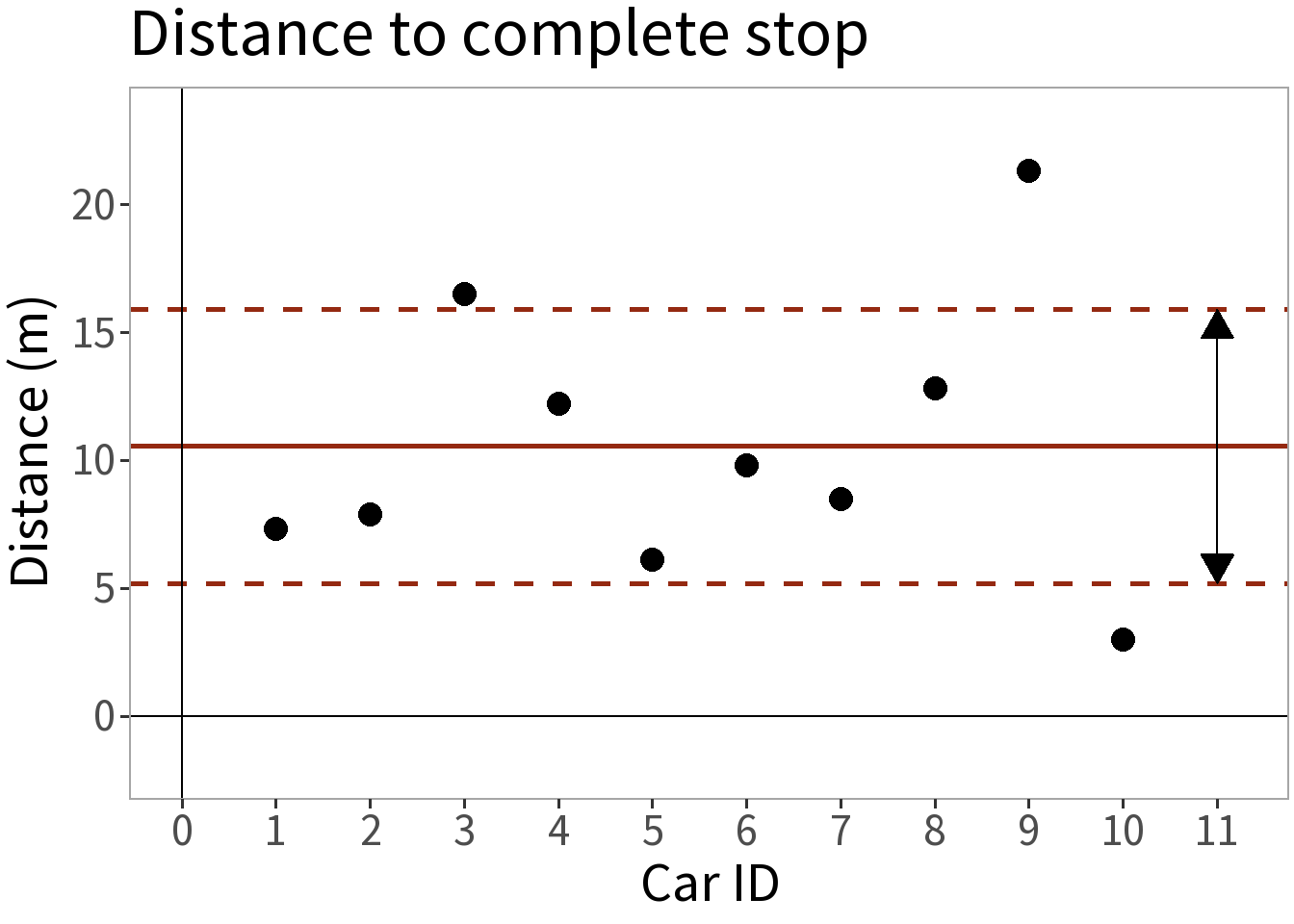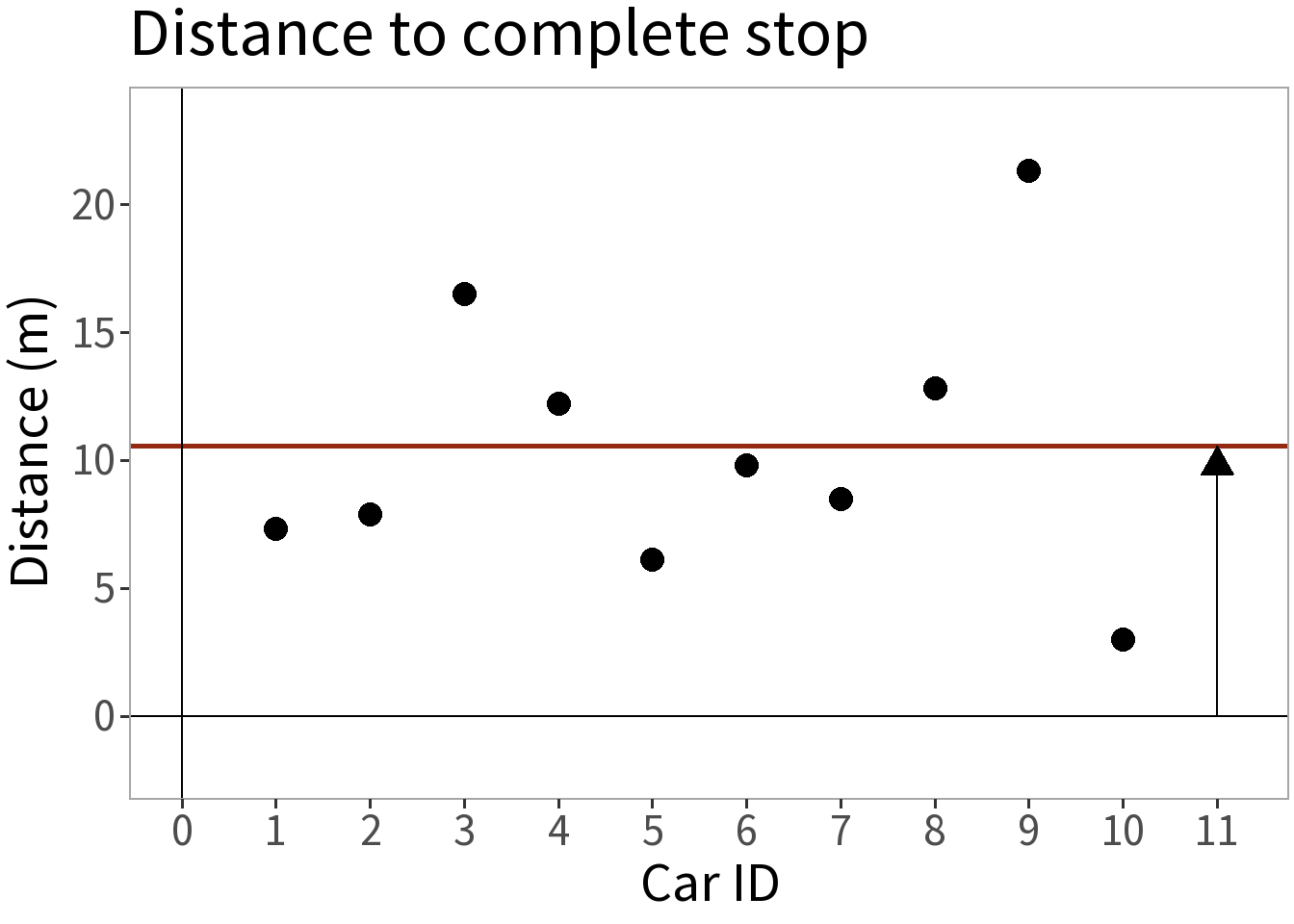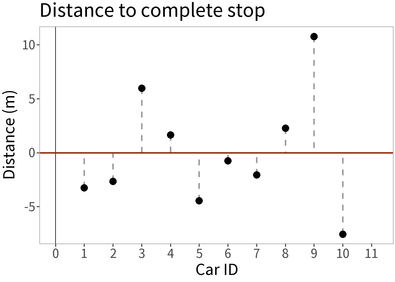 We take ten cars, send each down a track, have them brake at the same point, and measure the distance it takes them to stop.
