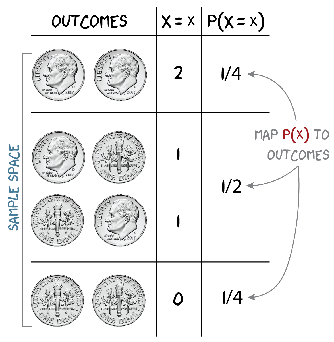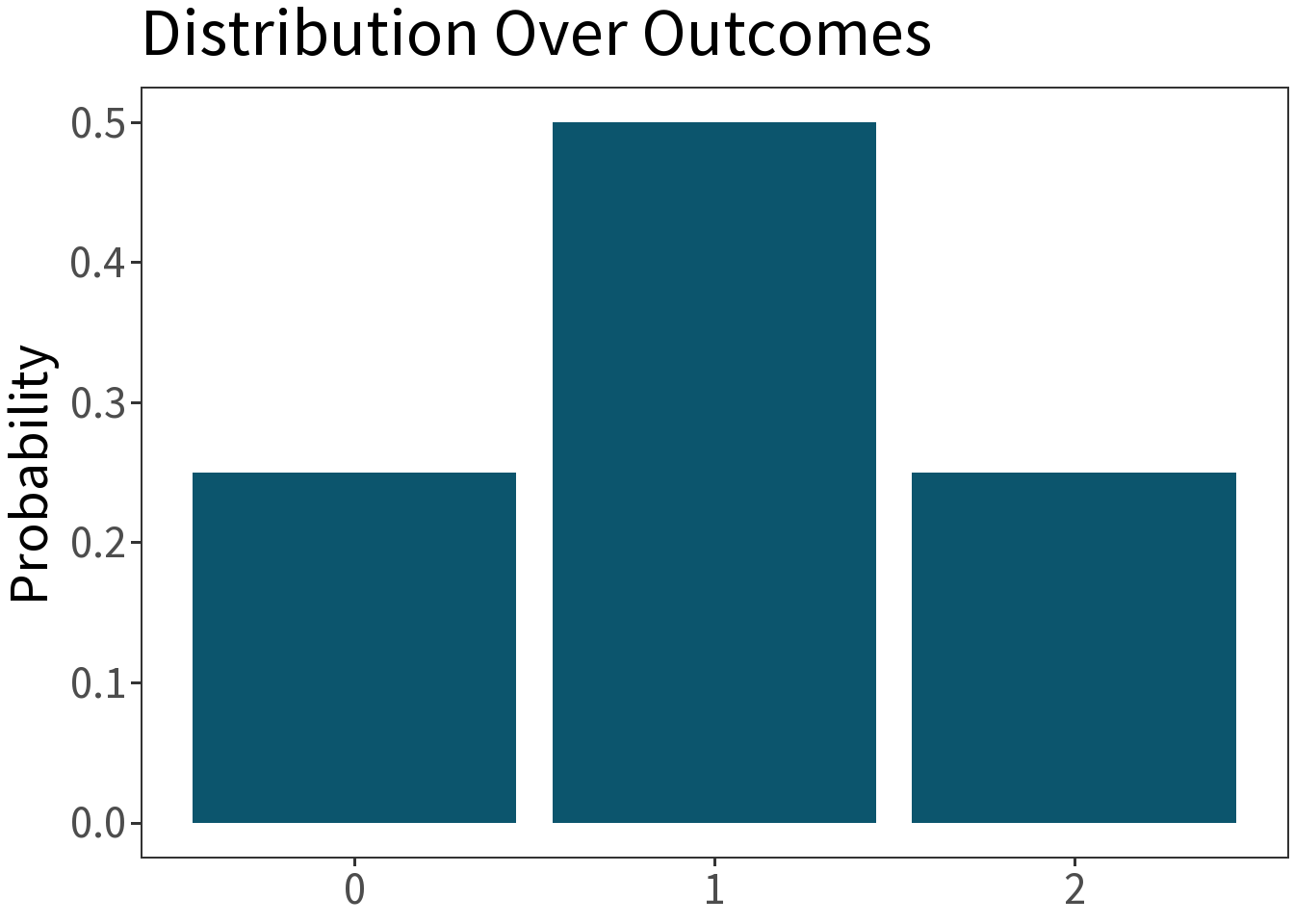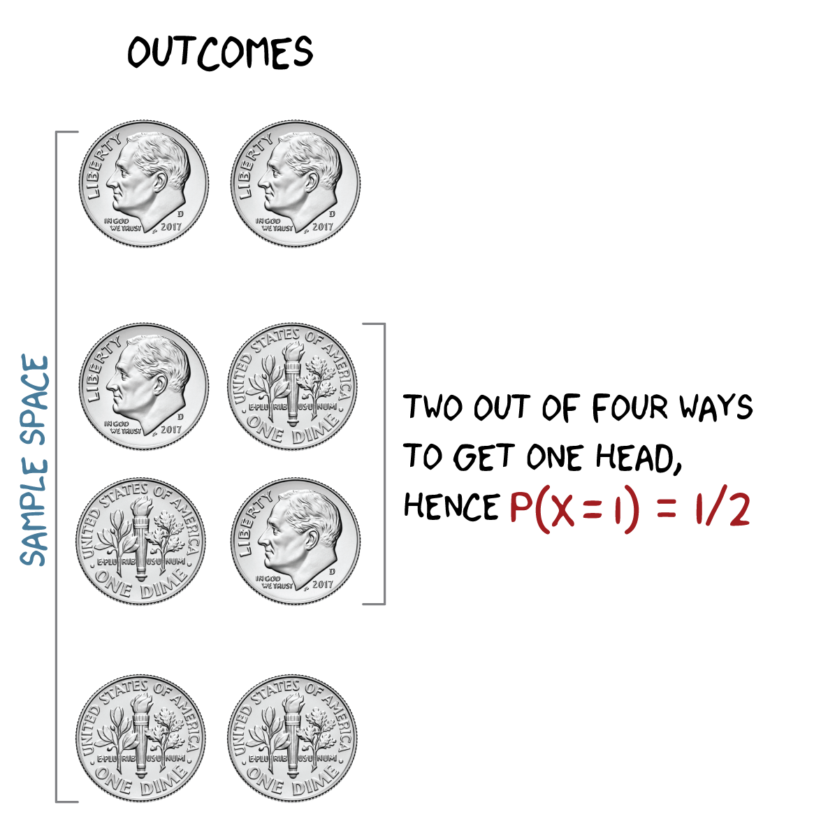 Let \(X\) be the number of heads in two tosses of a fair coin. What is the probability that \(X=1\)?
