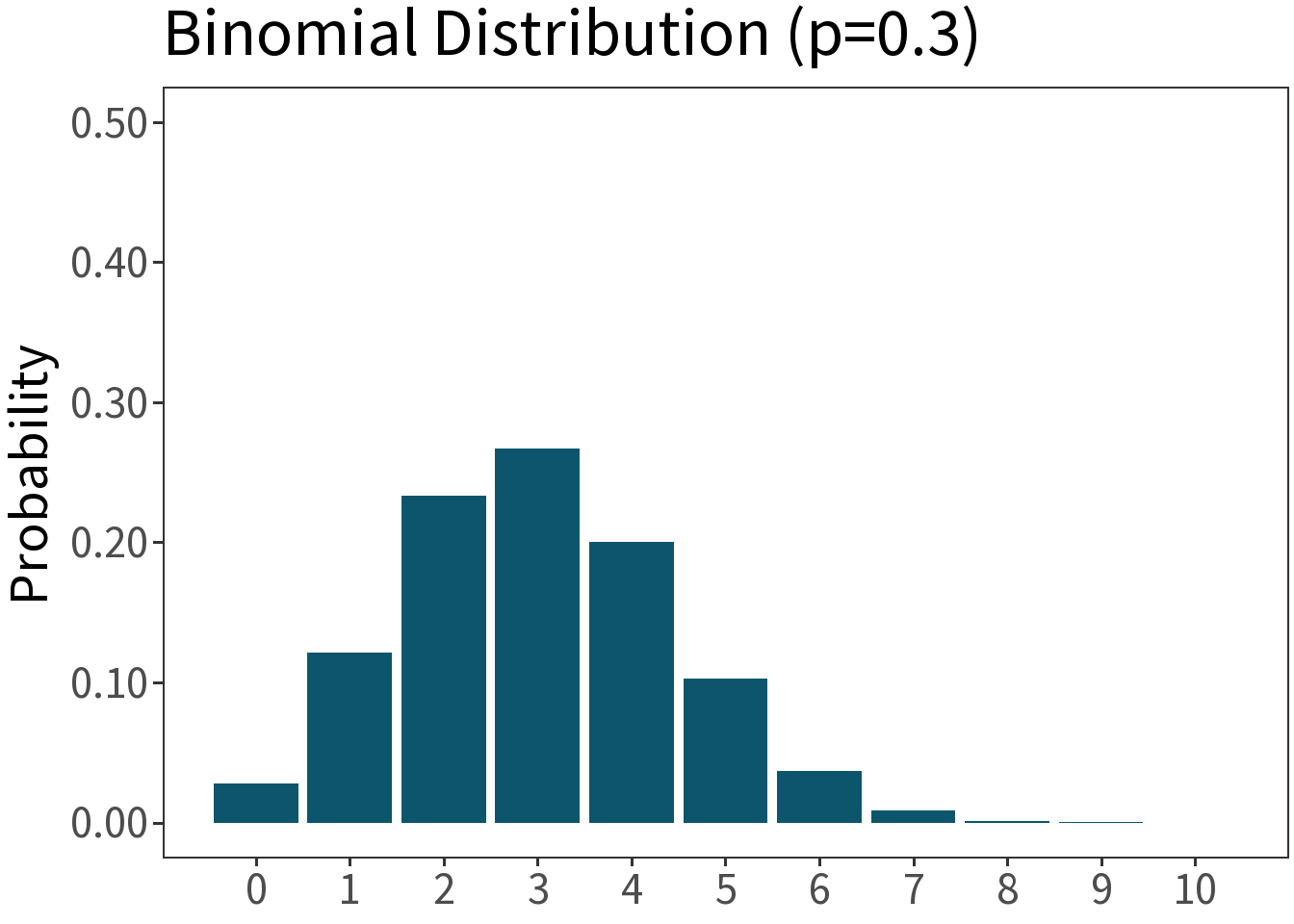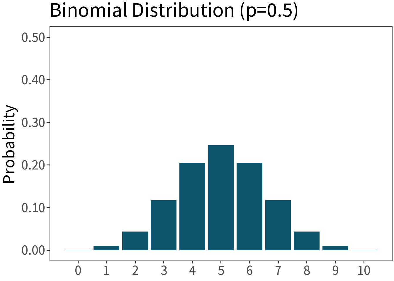 Df. distribution of a random variable whose value is equal to the number of successes in \(n\) independent Bernoulli trials. E.g., number of heads in ten coin flips.