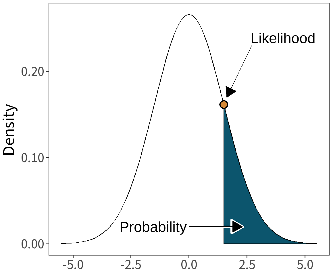 As the likelihood is often very small, a common strategy is to minimize the negative log likelihood rather than maximize the likelihood, (\(min\;\mathrm{-}\ell\)) rather than (\(max\;\mathcal{L}\)).