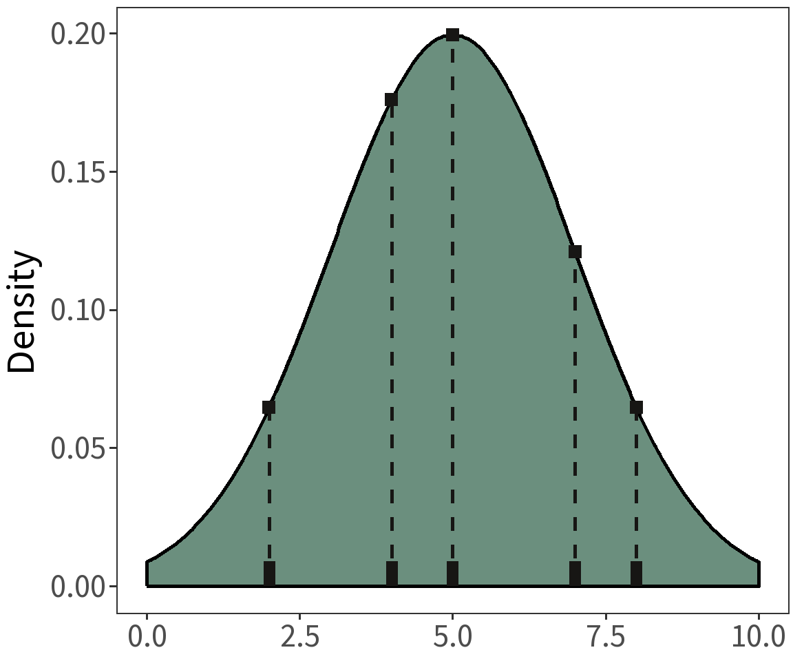 where \(\mu=5\) and \(\sigma^2=2\).