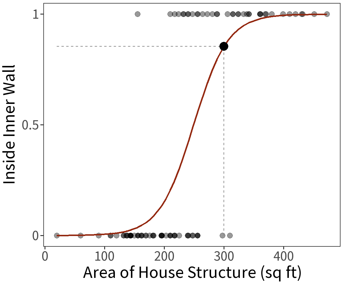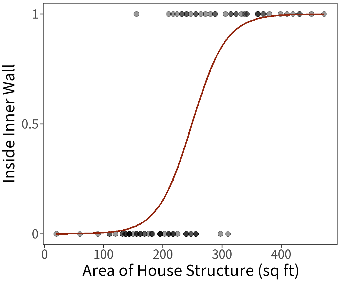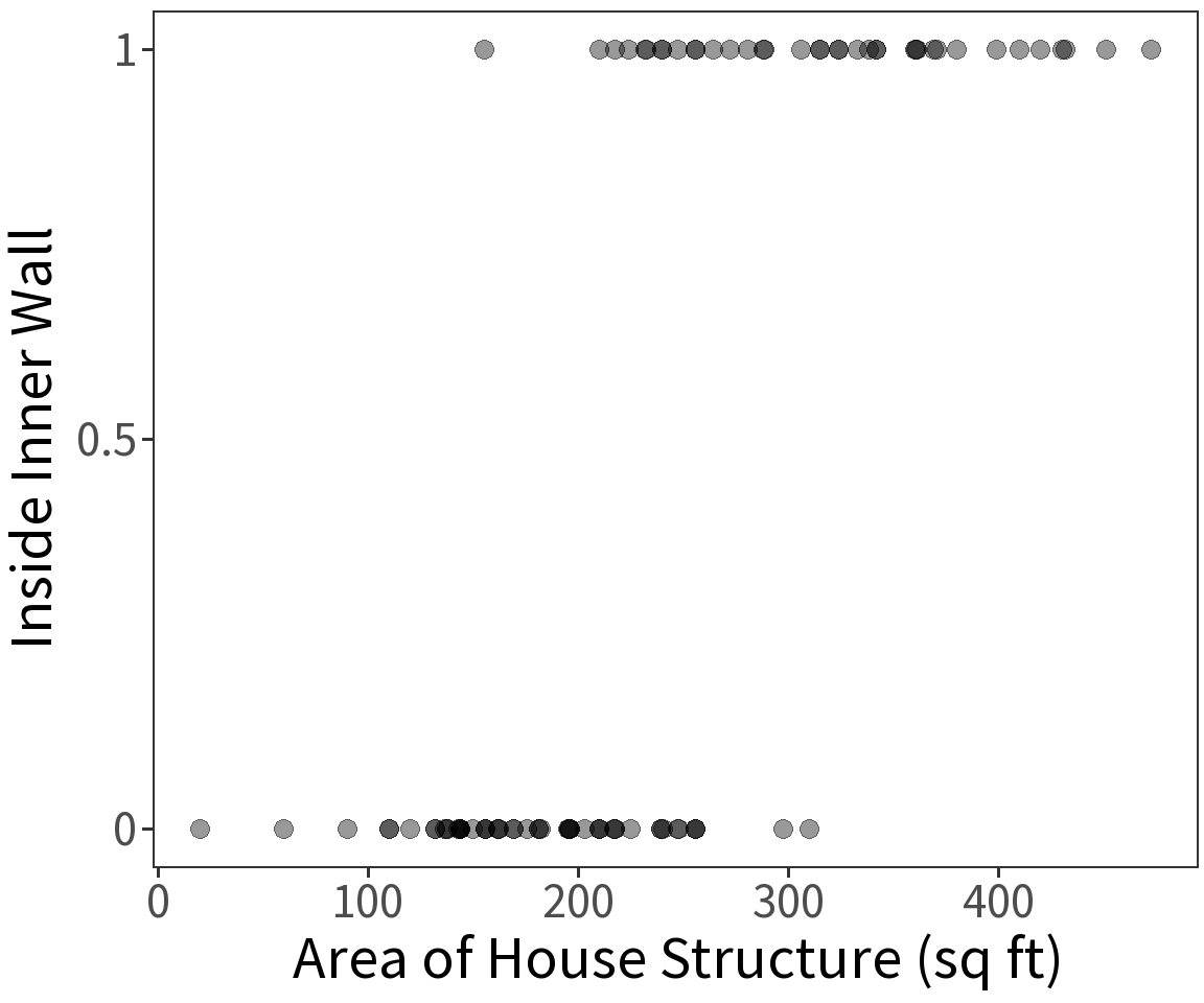 Location inside or outside of the inner wall at the Snodgrass site is a Bernoulli variable and has expectation \(E(Y) = p\) where