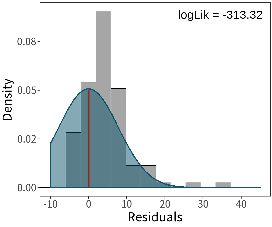 where \(\phi\) is a scaling parameter, assumed to be equal to 1, meaning the variance is assumed to be equal to the mean.